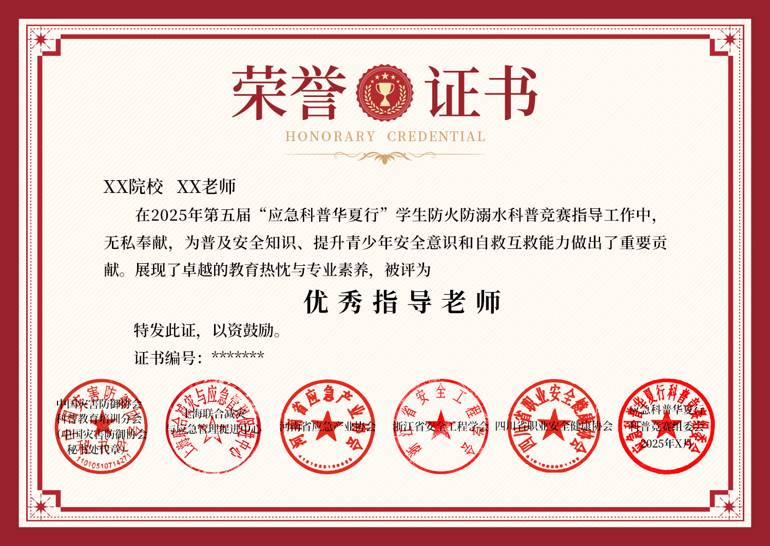 本次大赛设“优秀指导老师”。组织报名且成功完成比赛的学生人数达到50人及以上的教师,将被授予“优秀指导老师”,颁发纸质版证书。